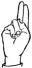 На ћирилици написано ИРЕНА АРКУЛА састоји се из 11 слова [?]. Исписано ћириличном једноручном азбуком за глувонеме: